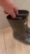 Stylish black rain boots. Glittery design. Durable and waterproof. Perfect for rainy days.