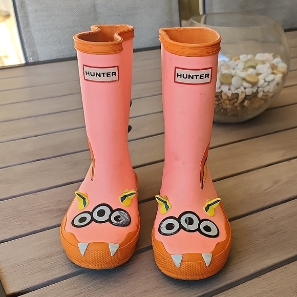 Bright Hunter boots with playful creature design. Ideal for rainy days.