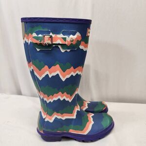 Hunter Kids First Storm Stripe Electric Rain Boots Size 4B/5G Green Blue Boys Girls