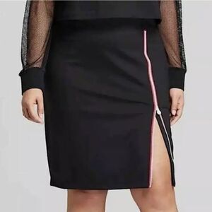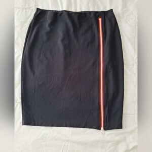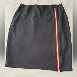 Hunter M black knit stretch pencil skirt Mini, red zipper stripe detail on front, Casual, 24" long, 30" waist