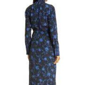 An eye-catching floral print adorns this long sleeve silk-blend dress finished with a smocked mock neck and side waist tie.