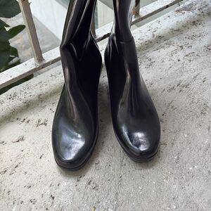 Check out the pictures. These boots are super nice and very good condition but where it says Hunter on the right as you see is a little scratched up.