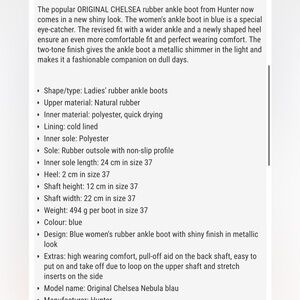 Hunter Nebula Blue Iridescent Wellington Original Chelsea Boot (size women’s 5 or kid’s 3)