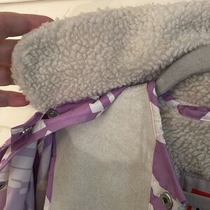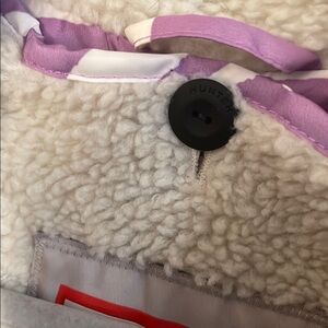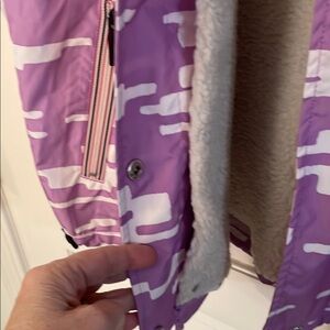Stylish purple camo jacket by Hunter. Features a cozy shearling collar. Perfect for cool weather. Lightweight camo jacket but… the fleece adds that extra warmth.. loved the lavender camo!!