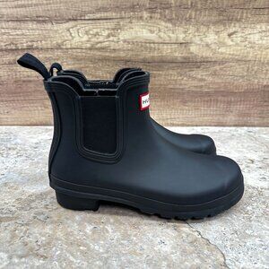 Hunter Original Chelsea Rain Boots Womens Size 7 Black Pull On Rubber Waterproof