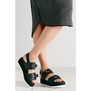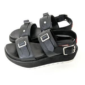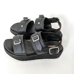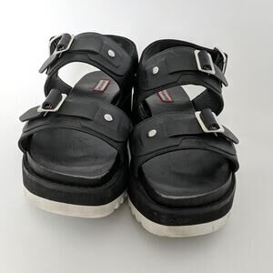 Hunter Original Double Buckle Chunky Platform Black Platform Sandals Shoes 10