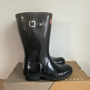 Hunter Original Kids Black Gloss Slip On Rain Boots- US 13 Boy/ 1 Girl