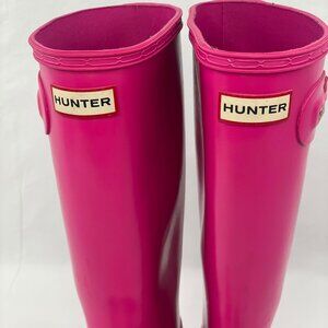 Hunter Original Kids Gloss Tall Wellington Rain Boots Pink Size Girls 6 Women 8