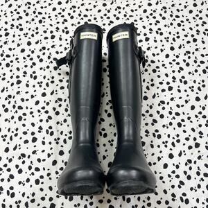 Hunter | Original Matte Black Green Label Adjustable Calf Wellies Wellington Tall Rain Boots US 7
