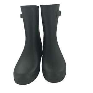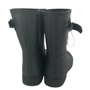 Hunter Original Refined Short Buckle Pull On Black Women's Rain Boots 11 New