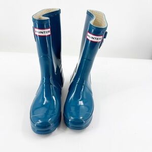 Hunter Original Short Teal Blue Wellies Rain Boot Cuttle SZ 5 US OUTDOOR EUC