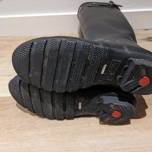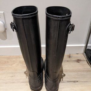 Gently used Hunter Rainboots in Black, Size US 8 or EU 39. Soles are in like-new condition.