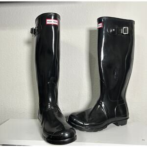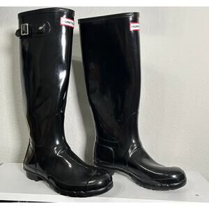 Hunter Original Tall Gloss Rain Boots Black Classic Black Women's Size 8