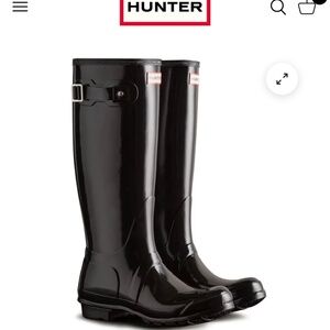 Hunter Black Original Tall Gloss Rain Boots and Hunter Cable Knit Cuff Boot Socks (Hunter White). Women’s size US 8. Worn once while on vacation. Original Box is included. Retail price over $240!