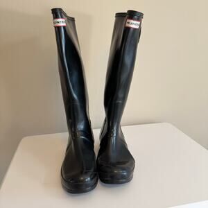 Hunter Original Tall Gloss Rain Boots Women 42 US 10 Black Adjustable Waterproof
