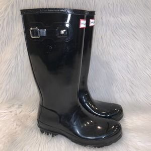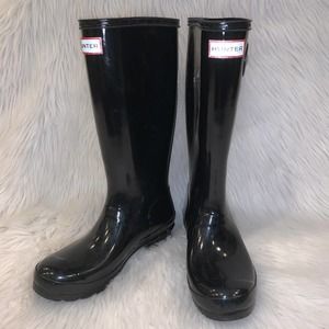 Hunter Original Tall Gloss Wellington Waterproof Rain Boots in Black