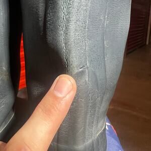 Condition: Used / Fair. One back-side shaft has a crease with a small crack (see close-up photo). Cosmetic scuffs from normal wear. Soles still solid. Interior clean. Fully wearable but not recommended for deep water due to the crack.
