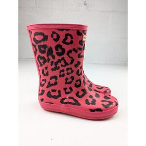 Hunter Pink/Black Animal Print Wellies Rain Boots - 12B 13G