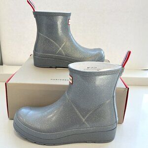 Hunter Play Short Cosmic Boots Rain Booties Waterproof Silver Glitter Size 7 NEW