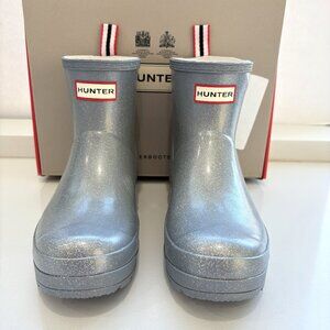 NEW Hunter Play Short Cosmic Boots Rain Booties Waterproof Silver Glitter Size 7 NIB