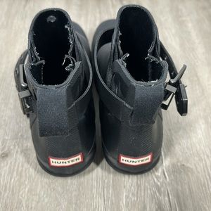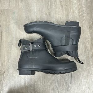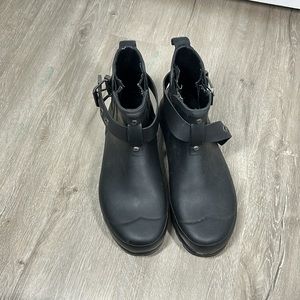 Slightly worn Hunter Rain Booties with belt strap. Easy to put on and off. Willing to negotiate