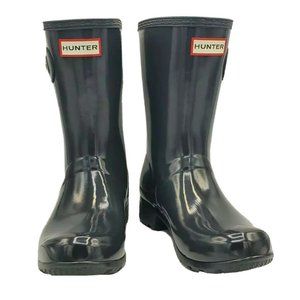 Hunter Rain Boots Gray Rubber Mid Calf Pull On 7