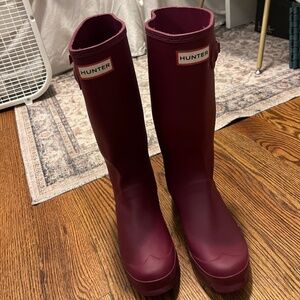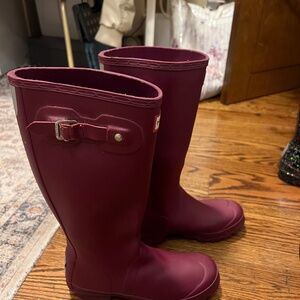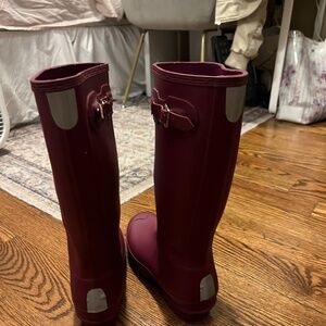 Selling a pair of Hunter rain boots in a lovely burgundy color! They are a US size 5 and few wears but in good condition. Perfect for rainy days or gardening
