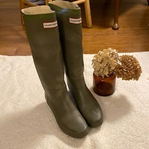 Green Hunter Rainboots. These are the small wedge style hunter rainboot. Size 7. Used condition.