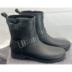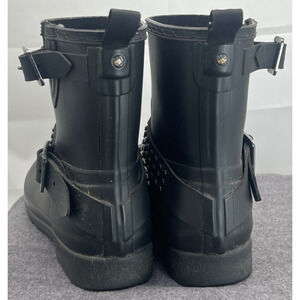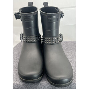 Hunter Refined Black Studded Biker Boot Womens 9 Rubber Rain Pull On Waterproof