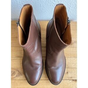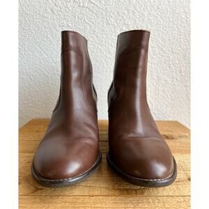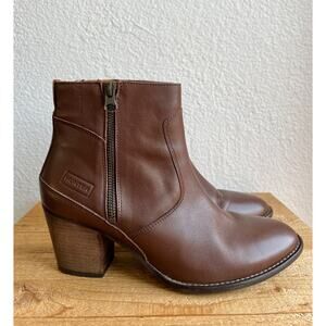 Hunter refined side zip leather heeled ankle boots in bitter chocolate brown. Water resistant. Hunter embossed logo. Size 9.