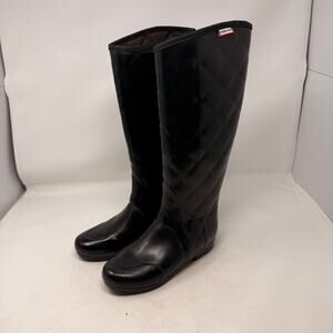 Hunter Regent Savoy Quilted Gloss Wellington Boots Black Waterproof Size 6