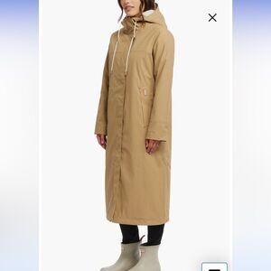 Hunter Sammy Rubber Tan Long Hooded Insulated Rain Coat with faux Sherpa Sz S