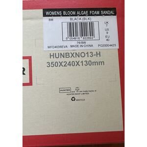 Crafted using BLOOM™ Algae which helps reverse the effects of water pollutionThese Hunter Bloom Algae Foam sandals are the perfect addition to your casual footwear collection. With a hook and loop closure and comfortable foam insole, they are designed for easy wear and all-day comfort. Available in women's size 9 US, these sandals feature a sleek black color and synthetic lining material.