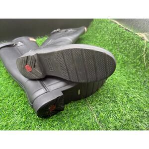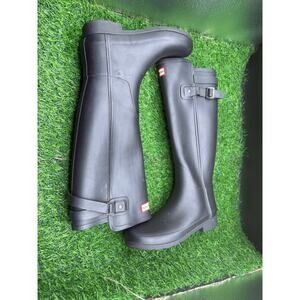 Hunter- Tall Rain Boots- Black- Size 6W. Rainy-day chic! Hunter tall black boots that turn puddles into a runway — timeless, waterproof, and stylishly bold. They are in great condition, lightly worn, with minimal signs of wear. The right boot has slight repaired imperfection - as pictured. They are clean and ready to style. Great value!!