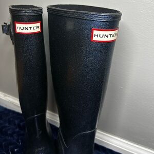Hunter Tall Rain Boots Starcloud Glitter Navy Blue