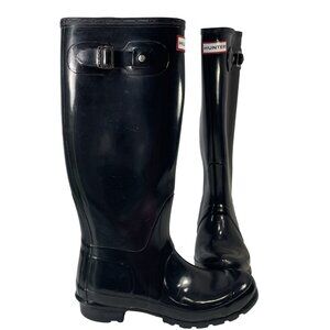 Hunter Tall Rain Boots Women's size 6 Original Black Gloss Silver Buckle Front Logo Waterproof Insulated #W23616