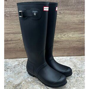 Hunter Tall Rain Boots Womens Size 9 EU 40/41 Black Rubber Pull On With Box