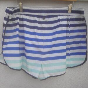 Casual and Comfortable Nylon Blue Striped Shorts. Super cute for hanging out at home on staycation