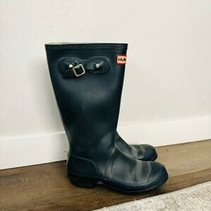 Hunter The Original Tall Waterproof Rain Boots dark green blue woman’s 6