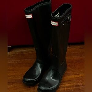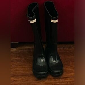 Hunter Tour Tall Patent Leather Black Women's Boots Sz 7 US EU 38