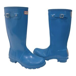 Bright blue boots by Hunter. Ideal for wet weather. Durable and stylish. Size 5 B 6 N EUR 37 Any minor imperfections are shown in my pictures and video