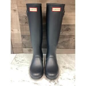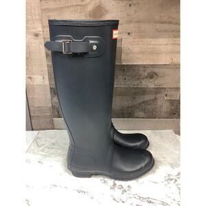 Hunter Women's 8 Black Matte Original Tall Rain Boots Pull On Waterproof LM1-53
