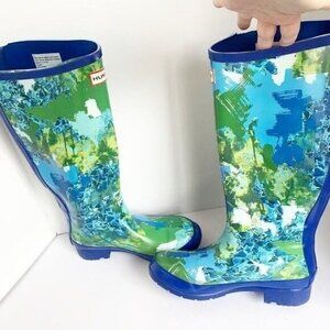 Hunter Women's Abstract Waterproof Rain Boots 6 Zip Up Outdoor Bright Statement