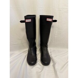 Hunter Women's Black Tall Adjustable Back Rain Boots Rubber Size US 7 EU 38