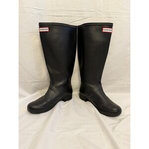 Keywords: Hunter, Rain boots, Tall boots, Black boots, Women's boots, Rubber boots, Adjustable, Waterproof, Outdoor, Weather, Rainwear, Fashion boots, Size 7