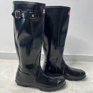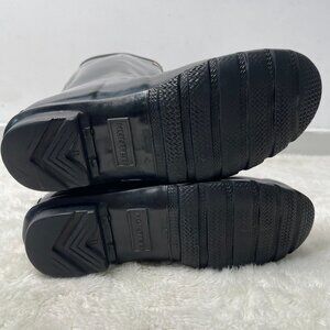 Hunter Women's Black Tall Leather Gloss Rain Boot Round Toe Shoes Size 7F / 6M