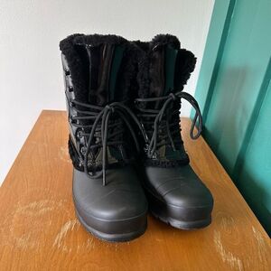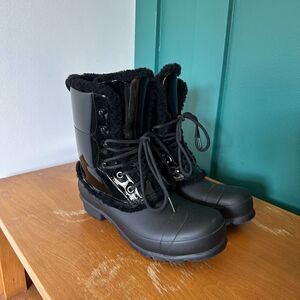 Hunter Women’s Black Original Patent Leather Shearling Lined Lace-up Boot