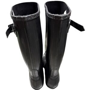 Hunter Women's Buckle Tall Gloss Rain Boots Solid Black Red Logo Size 7 NWOT
