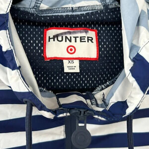Hunter Women's Lightweight Hooded Striped Rain Coat Mesh Interior Size XS