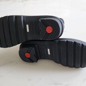 Stay dry and stylish with the Hunter Original Chelsea Rain Boots in sleek black! ๐ค Handcrafted from FSCยฎ-certified natural rubber and vulcanized for durability, these boots deliver classic Chelsea charm with modern rain protection. Featuring elasticated gussets and a nylon pull tab, they're easy to slip on and perfect for any wet-weather day. โ